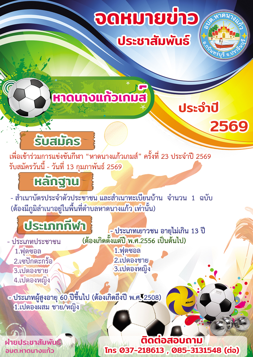 ประกาศรับสมัครทีมกีฬาเพื่อเข้าร่วมเเข่งขันกีฬาต่อต้านยาเสพติด ครั้งที่ 23 ประจำปี 2569 |